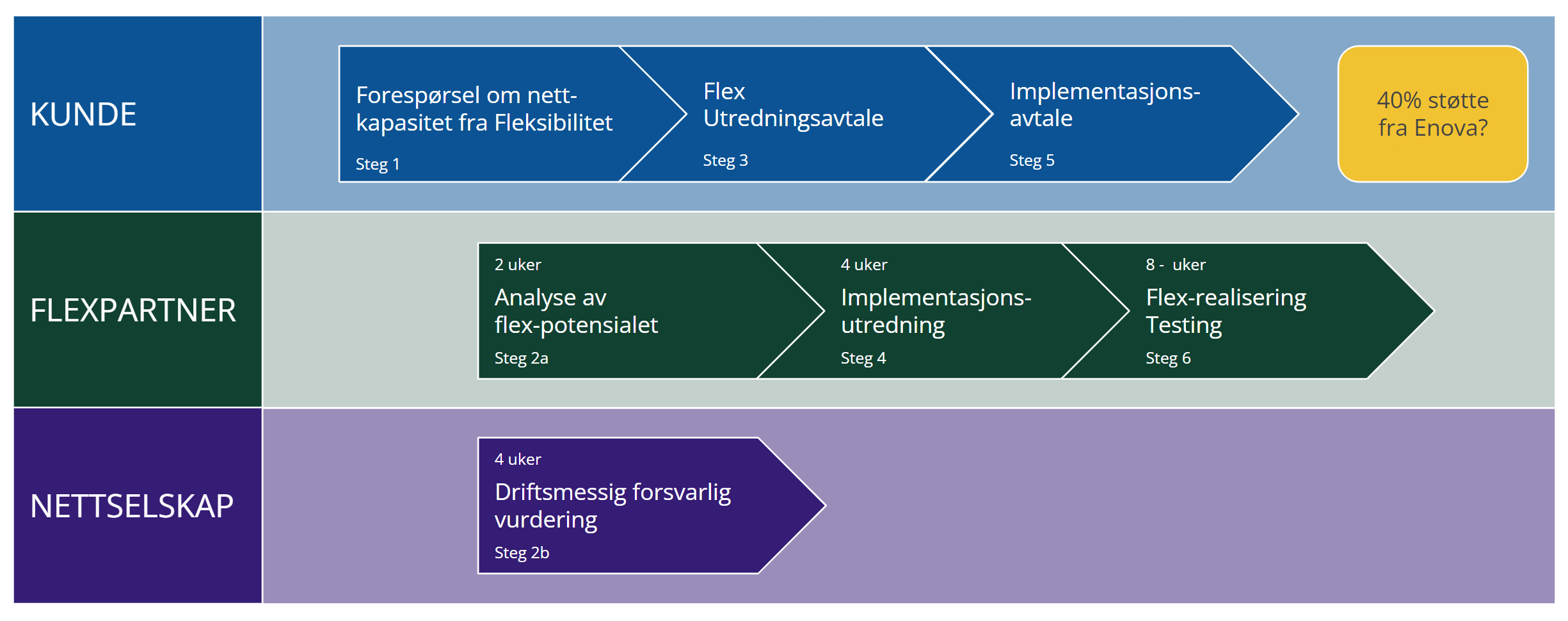 Bildet nedenfor illustrerer prosessen for å få ny nettkapasitet og leveringstiden for en næringspark.