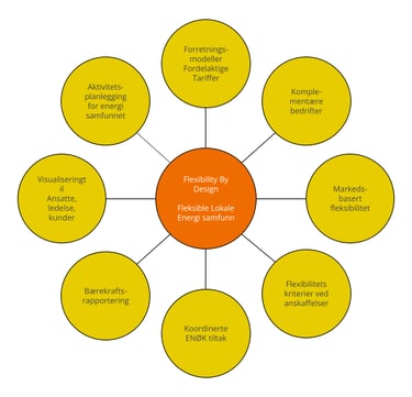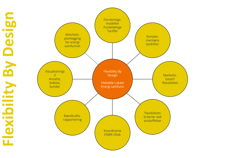 Fleksibilitet gjennom design er en omfattende tankegang. Ideen er hvordan vi, og denne typen energifellesskap, kan gjøre strømnettet bedre ved å samarbeide.